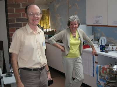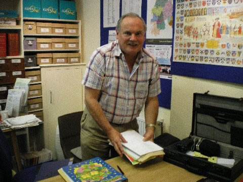 Michael Dalton gives his personal account of the Dalton Genealogical Society’s Annual General Meeting and weekend gathering for 2009 held in Lancashire, England from Friday 21st to Sunday 23rd August 2009. Friday, 21st August 2009 Kate and I arrived at the Swallow Hotel at Samlesbury near Preston in Lancashire in the late afternoon after a journey from Warwickshire where we had stayed the previous night. We came through torrential rain on the M6 motorway – it always seems to rain on Fridays when we are travelling! However it brightened up in the early afternoon and this gave us the opportunity to revisit the villages of Croston and Rufford, both of which have strong Dalton links. The Swallow Hotel felt familiar as we had stayed there previously for the Annual DGS Gathering in 2004, so we were soon settled in and enjoying a swim in the indoor pool. At 7.00 pm delegates met for a pre-dinner drink and then 15 of us sat down for an enjoyable dinner and the opportunity to catch up with each other’s news. Saturday, 22nd August 2009 After breakfast, it was a 9.00 am departure for Oswaldtwistle and the Library & Research Centre of the Lancashire Family History & Heraldry Society, which John Dalton, Editor of the DGS Journal and organiser of the weekend, had arranged as the venue for our AGM. We were joined there by other delegates who lived locally and were not staying at the Swallow. We are most grateful to the LFHHS for allowing us to use their Centre, which, although small, is well organised with a good stock of books and journals and excellent computer facilities with PCs connected to the internet. Howard Dalton explains an intricate genealogical point to Jane Dalton These provided the opportunity for delegates to explore various websites including our own DGS site at www.daltongensoc.com. I was able to explain different aspects of what is available and, in particular, on the Family Tree DNA website, demonstrate how genetic distance can be used to identify how far back to look for a common ancestor. I was able to talk to small groups from three genetic families in the Dalton International DNA Project as follows: • Genetic Family E was represented by Edna Redpath, her grand daughter Hannah Redpath, and Margaret Deyes. They all descend from Daltons of Croston, Lancashire. Cousins Edna Redpath and Margaret Deyes in earnest conversation • Genetic Family Y was represented by John Dalton and Audrey Dalton (wife of David Dalton) – this group is descended from Daltons of Oldham, Lancashire. • Genetic Family Z was represented by the two Howard Daltons (Howard from near Pickering in Yorkshire and our past Treasurer and Howard J from Poole in Dorset, our minutes secretary). Their Dalton ancestors come from Yorkshire and Buckinghamshire respectively and there is more research work to be undertaken to establish how they might be connected. This informal time focusing on how the internet helps the family historian proved very valuable and was over all too soon. The Chairman preparing for the AGM At 11.15 am, after coffee and Sheila’s very good homemade gingerbread, I opened the Annual General Meeting. The full minutes of this meeting will be published in "Daltons in History" next month. I was able to give a very upbeat report on the Society’s activities since the last AGM in June 2008. The undoubted highlights were the gatherings in Birr, Co Offaly, Ireland last year and in Orange, New South Wales, Australia earlier this year. The Journal and "Daltons in History" are flourishing and our website is ever expanding. The DNA project continues apace and our finances are in good health. None of this can happen without the dedicated effort of all our officers, committee and other helpers. The AGM gives me an opportunity to thank them all for what they do. All the present officers and committee offered themselves for re-election and were elected again unanimously. With much to report and discuss, the meeting concluded just in time for the arrival of hot Lancashire potato pie for our lunch and delicious it was too. Well done Sheila! Queen Street Mill Textile Museum In the afternoon we all travelled over to the Queen Street Mill Textile Museum at Harle Syke on the other side of Burnley. Here we were treated to a fascinating tour of the last surviving 19th century steam powered weaving mill. Delegates viewing the weaving machines - there are 380 of them As we were taken round, we all thought about the conditions that workers in the mills had to endure and remembered that the livelihood of many Dalton ancestors in the Oldham Dalton branch of the family depended on being employed in places such as Queen Street Mill. The steam engine that drives the whole mill After a cup of tea we returned to the Swallow Hotel and readied ourselves for the AGM Dinner, described on the programme as “with a Lancashire flavour”. We all enjoyed an excellent dinner and then the Lancashire flavour became clear. John, suitably attired in a waistcoat that his grandfather might have worn, regaled us with reminiscences and readings about life in the mills as his forebears had known it – and all in John’s inimitable Lancashire accent! John Dalton in costume... but which era!! Full marks to John, and a round of applause, for this further insight into what the mills meant to so many. After dinner we were able to retire to the lounge, and continue our discussions and chat. A very sociable group made it an evening to remember. Sunday, 23rd August 2009 A leisurely breakfast this morning and departure for Thurnham around 10.30 am. Kate and I wanted to visit Glasson Dock and Cockersand Abbey before meeting up for lunch at the Thurnham Mill Inn. Datails of Cockersand Abbey Chapter House at Cockersand Abbey looking westwards Unfortunately it had not proved possible to book lunch at Thurnham Hall itself owing to a large christening party taking over the dining room. Never mind we had a very good lunch at Thurnham Mill and met up 