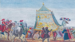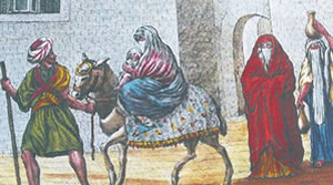 | From Millicent Craig In 1747, Sir Charlemont of Ireland (James Caulfield) set out on a journey to Egypt. Charlemont, a wealthy young man, had read the accounts of travelers who had gone before and was intrigued by the privacy rules that prevented them from drawing or painting religious rites or women. He wanted to return with visuals of life to add to his accounts of the voyage. On the journey he stopped in Greece where he met a young draughtsman, Richard Dalton. Charlemont invited him and his friends to join his party and to be the official image maker of religious rites and of people, particularly of women who were confined by the Ottomans. Outsiders were not allowed to view these subjects, let alone draw them. Dalton, who was about 27 (and reportedly born in Cumbria in 1712*) accepted the challenge. As they traveled about, the party frequently remained concealed from view while observing the events that Dalton captured with pen. He provided Charlemont with ample drawings, many colored that became the cornerstone of Charlemont’s numerous publications. Most were lost from the library at Charlemont Castle and only a few remain. Four of Dalton’s works are on display at Trinity College, Dublin, not because of the quality of his artistry, but because of the rarity of the subject matter. Two of the images are presented below.